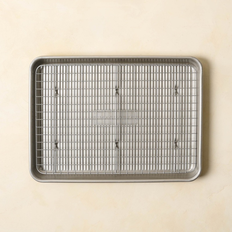 Cool cookies, glaze cakes, and bake to perfection with the Baking Rack & Sheet Set. Available in half sheet and quarter sheet sizes, these sets include both a baking pan and an oven safe cooling rack with a steel cross wire design and six raised feet which