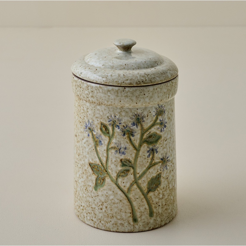 Bring a touch of vintage charm to your kitchen with the Blue Wildflower Canister. Its antique-inspired design adds a whimsical flair while keeping your essentials neatly stored. Perfect for brightening up your countertop with a splash of blue and a hint of
