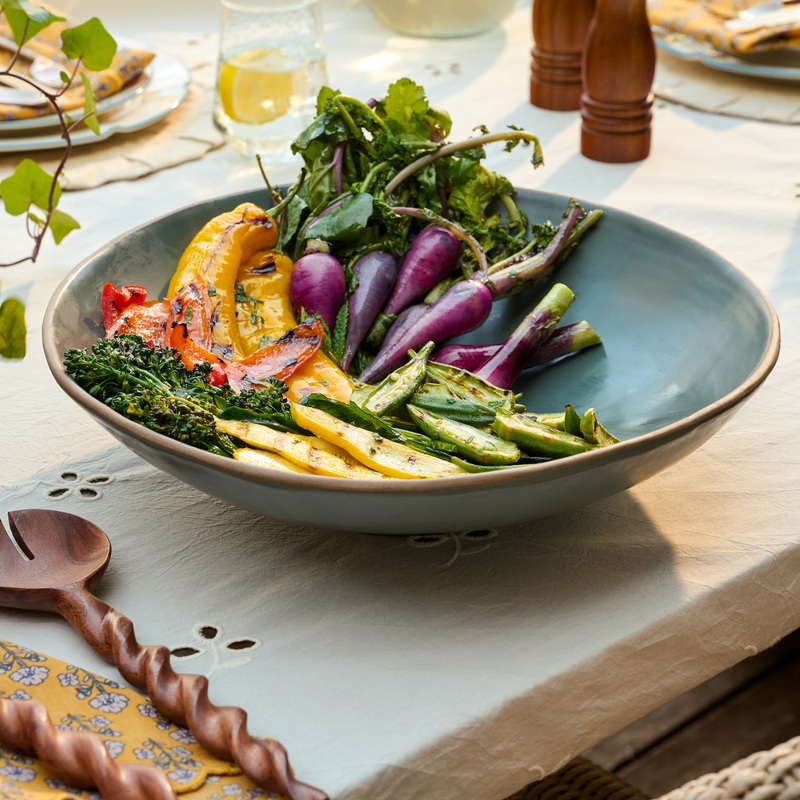 Serve up mixed greens or side dishes in the Deep Ocean Serving Bowl. With its wide silhouette and deep, hazy blue hue, this generously sized serveware piece brings striking contrast to summertime tablescapes.
