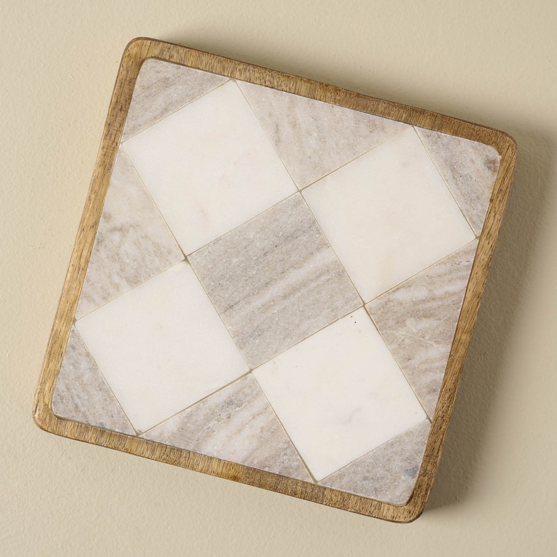 Give dishes straight from the oven a safe place to sit with the Everett Checkered Marble Trivet. Inspired by the floor in the castle conservatory, this trivet takes after timeless tiles found in a European chateau and is an ideal spot for hot pots and pans