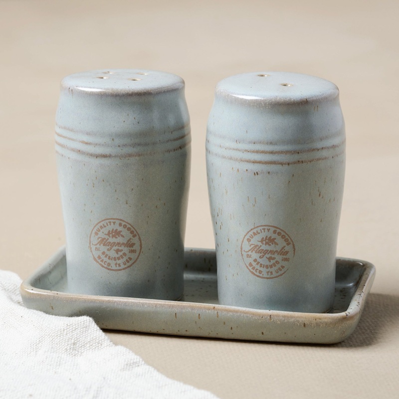 Keep meals seasoned to perfection and your kitchen looking classic and collected with our vintage-inspired French Grey Embossed Stripe Salt and Pepper Shaker Set. A soft taupe distressed glaze and our makers mark give these shakers a feel worthy of being p