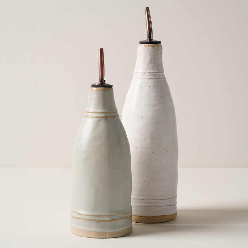 Ideal for dressing leafy greens or adding a drizzle to Caprese salad, our French Grey Vinegar Pour features a copper spout and elegant ridged detailing. This 23 oz. stoneware bottle makes a beautiful addition to the countertop sitting solo or paired with t