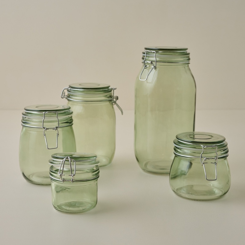 Keep food fresh with our Green Glass Storage Jar, available in five versatile sizes to suit every need. Whether storing leftovers for later or concealing dry goods, each jar features a vintage-inspired green hue and an air-tight clamp lidblending function