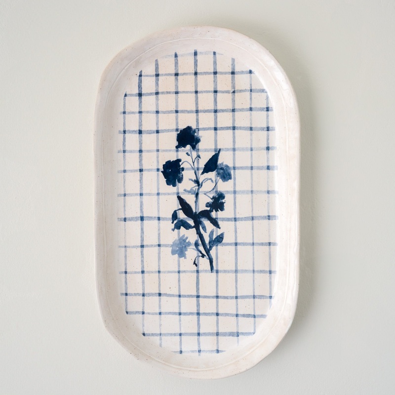 Crafted from stoneware and adorned with a lovely floral motif painted by our in-house artist, the Lila Serving Platter brings sweet accents to your existing kitchen decor. Given appetizers, charcuterie, and fresh baked bread a place to shine on this platte