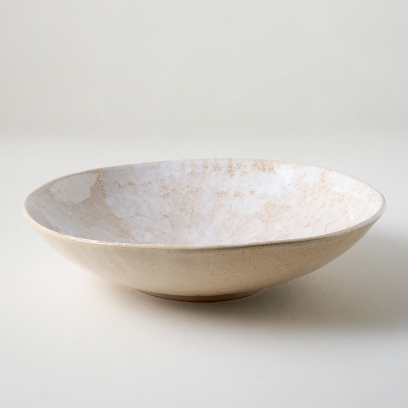 Crafted from stoneware and finished with a sponged pattern, this serving bowl provides a place for your fresh baked bread and appetizers to rest during a meal. With an earthy hue and heirloom-quality materials, this bowl will be a timeless piece regardless