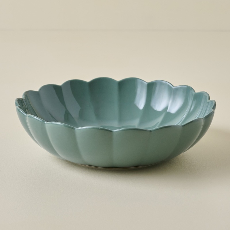 Gracefully scalloped edges offer soft contrast to muted green stoneware in the Scalloped Serving Bowl. Exclusive to , this beautiful bowl features our makers mark engraved on the bottom and can be used for everyday dining or passing around the table for sp