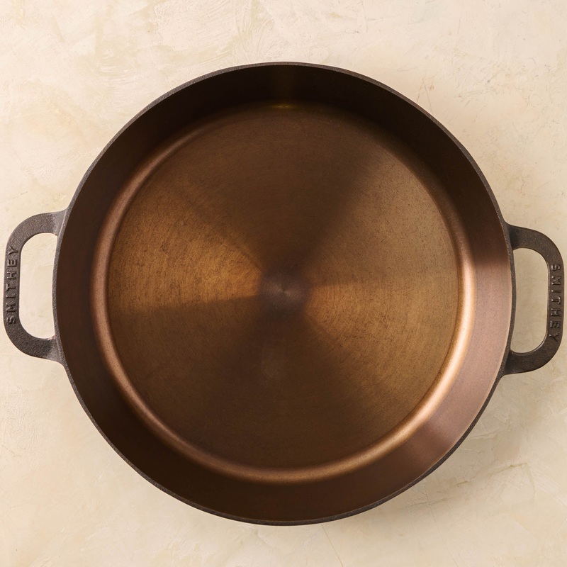 Hand forged in Charleston, South Carolina, the Smithey Dual Handle Skillet (No.14) was made for a feast. Featuring a generously-sized polished interior surface, this unique cast iron skillet becomes naturally nonstick once seasoned. Ideal for large roasts,